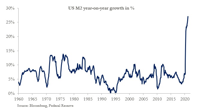 This extraordinary monetary and fiscal stimulus comes at a time when households have accumulated large savings during lockdown and, as economies are reopened, are expected to greatly increase spending.